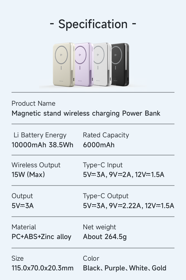 1.The folding design is not only a charging bank, but also a mobile phone holder, easy to use and carry.